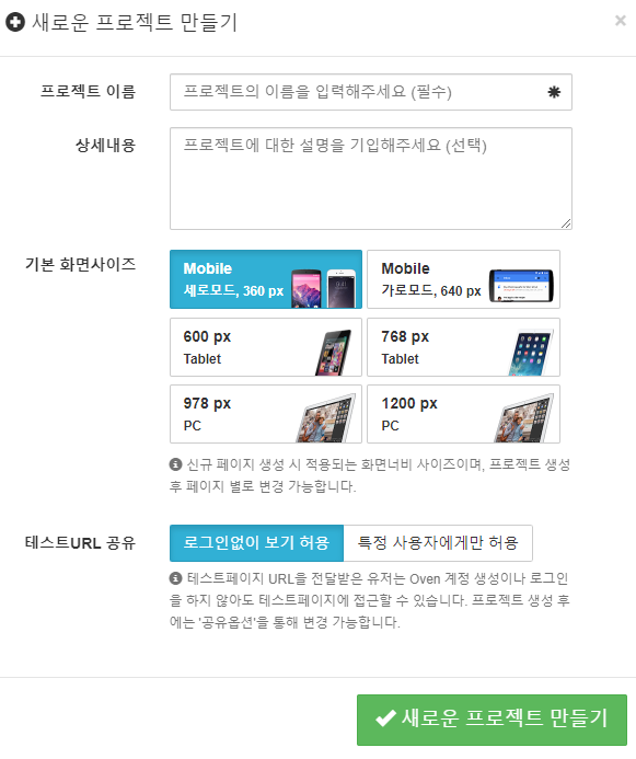테스트 URL 공유는 언제든지 변경 가능합니다. 로그인 없이 보기 허용으로 새로운 프로젝트를 만들어줍니다.
