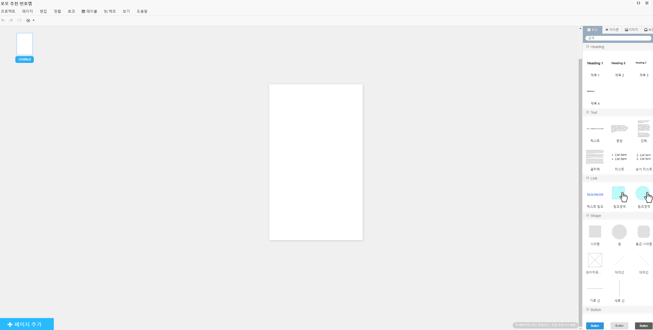 오른쪽에 있는 요소/ 아이콘/ 이미지 등을 통해 모형을 제작할 수 있고 사용하실 때는 끌어다가 쓰시면 됩니다!