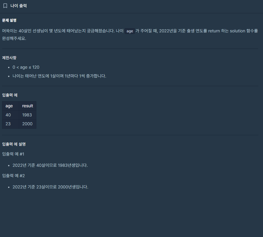 제한 사항을 보면 나이는 태어난 연도에서 1살이며 1년마다 1씩 증가합니다.