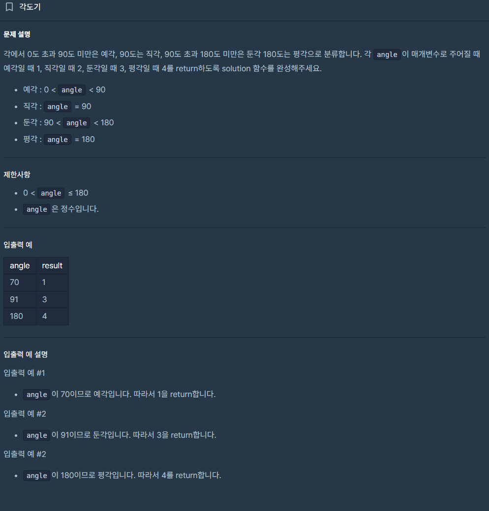90도 초과 180도 미만은 3을 return ( 둔각 )
