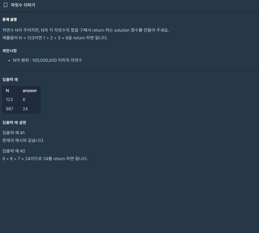 각 자릿수는 %를 통해 쉽게 알 수가 있는데 answer = answer + temp % 10을 통해 자릿수를 알아줍니다.