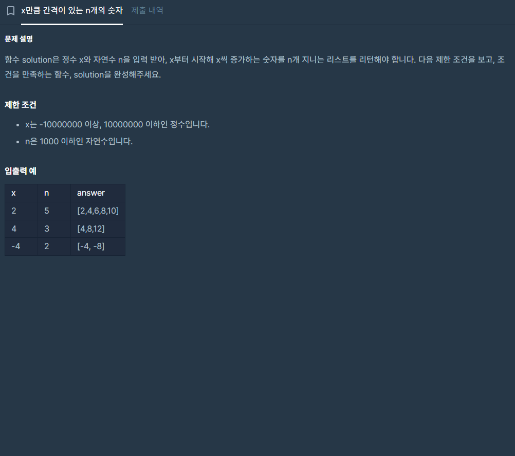 결국 x와 n을 곱한 범위만큼 배열을 만들어 줘야 하기 때문에 잘 따져보자!