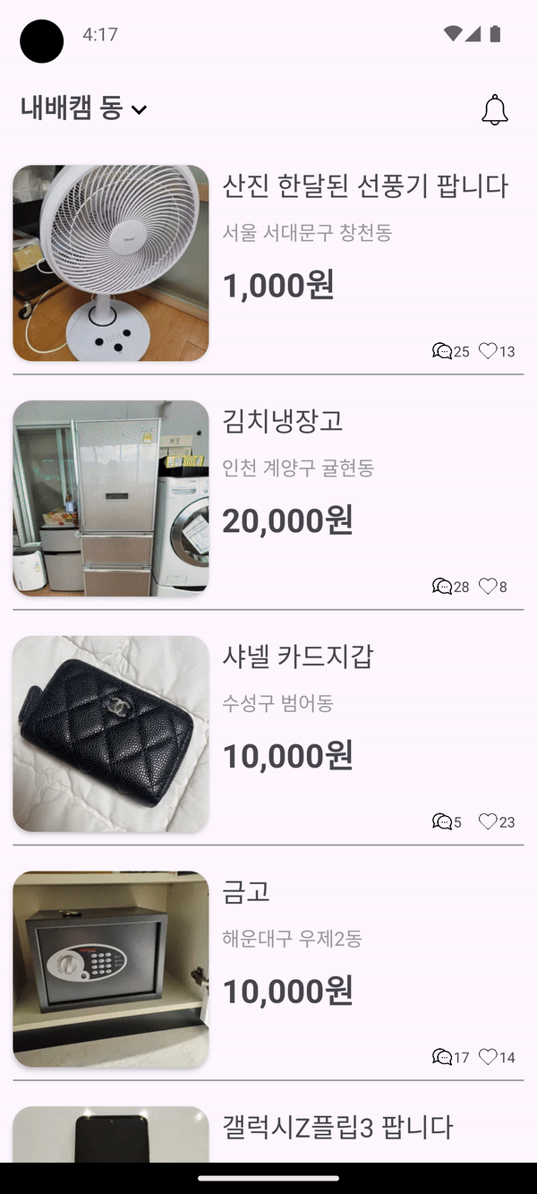 왼쪽 자료는 처음 앱을 실행했을 때 10개의 더미데이터가 각각 나오는 모습이고